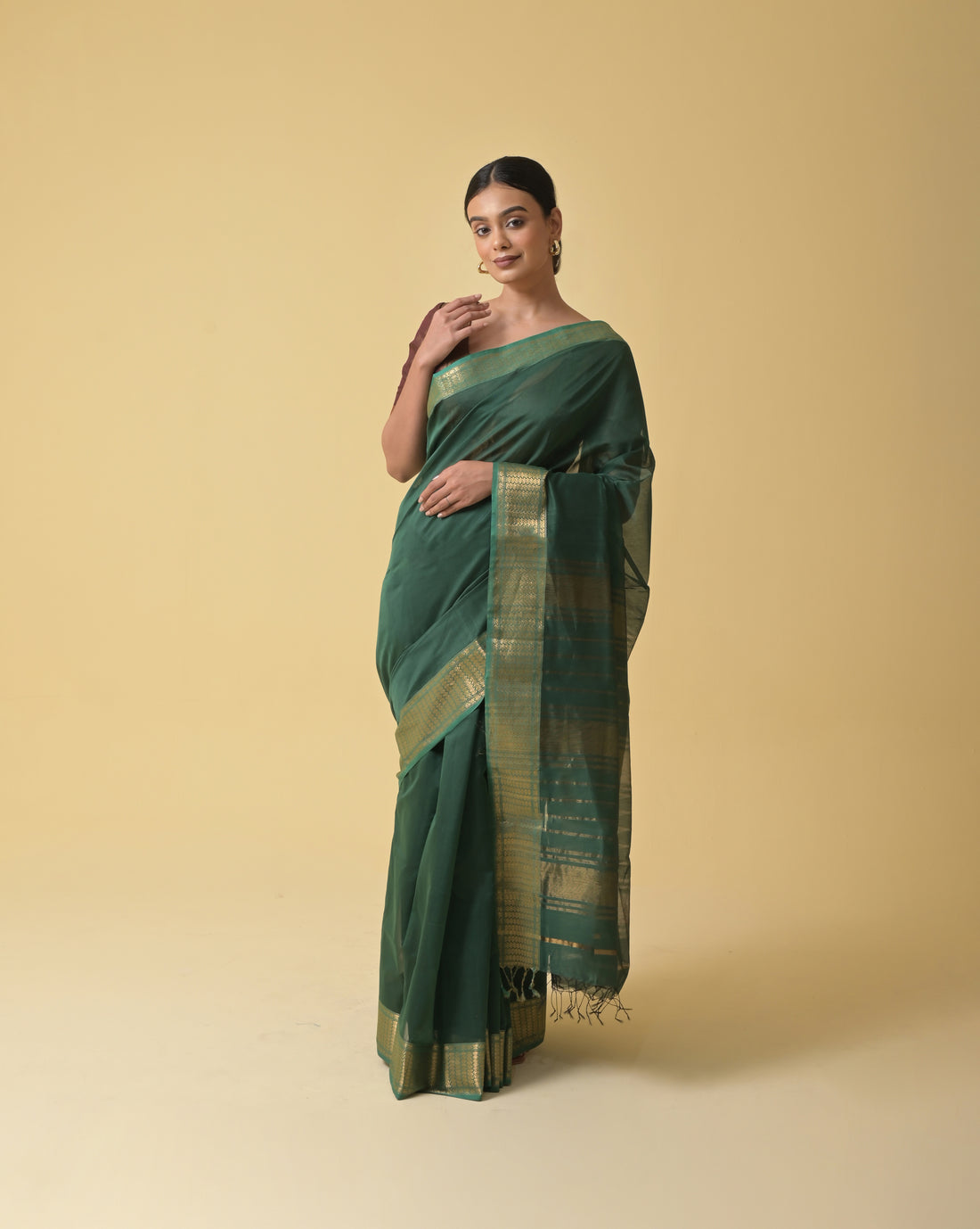 Forest Green Maheshwari Handwoven Silk Cotton Saree