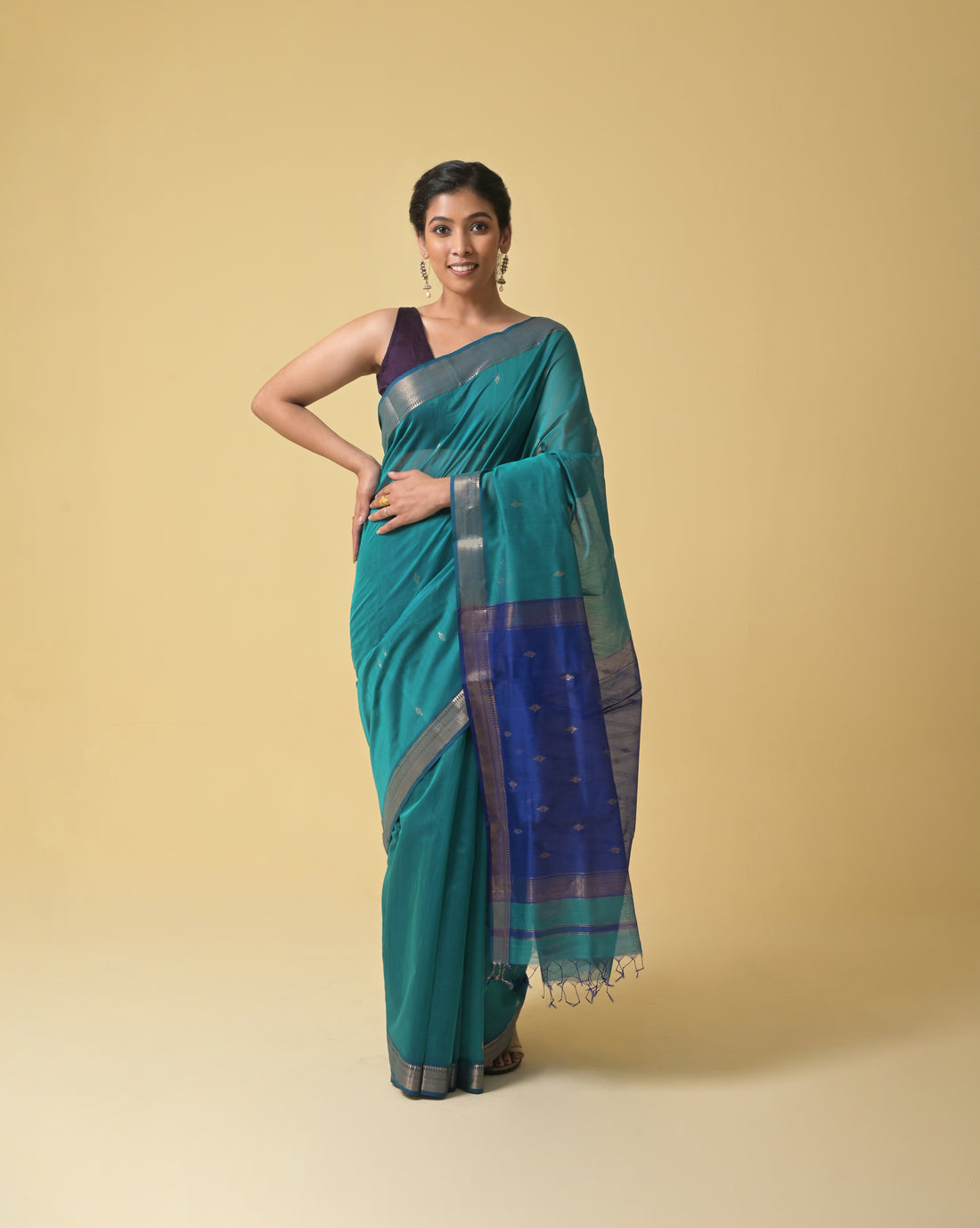 Sea Blue Maheshwari Handwoven Silk Cotton Jari Pallu work
