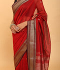 Rust Red Resham Border Handwoven Jalla Pallu Saree
